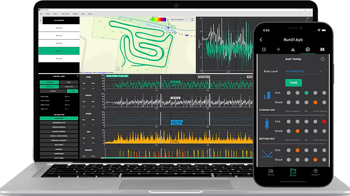 Zou je ook eens gebruik willen maken van dezelfde telemetrie technieken die de professionele race-teams gebruiken? Het is nu mogelijk om je vering met uiterste precisie te analyseren. Het telemetrie systeem werkt door het monteren van sensoren op de voorvork en schokbreker, deze meten continue de positie van de vering. Een GPS sensor legt de positie op de baan vast.